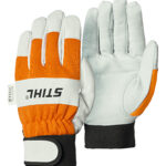 Bequeme Arbeitshandschuhe aus weichem Ziegenleder. Breiter, elastischer Gummibund mit Klettverschluss verhindert Eindringen von Fremdkörpern. Orangefarbener Handrücken aus Nylon. Weitere Details wenn Vorhanden: