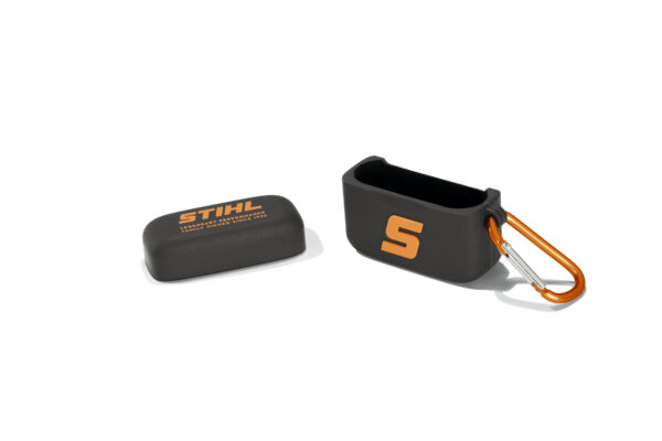 Keine Lust mehr auf Verwechslungen, weil jeder die gleiche klassische weiße Hülle für Airpods hat? Hier kommt die Lösung: eine Individualisierung für deine Airpods Hülle im STIHL Style! Die schwarze Hülle wird durch ein erhabenes oranges „S“ und ein »STIHL LEGENDARY PERFORMANCE« Logo verziert. Praktisch ist auch der orangene Karabinerhaken, mit dem du die Hülle befestigen kannst.