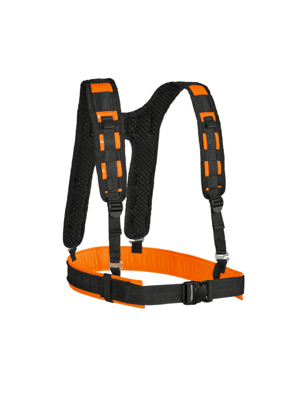 Der weiche, gepolsterte STIHL Schultergurt ADVANCE X-Flex hilft, das Gewicht der Taschen und deren Inhalte besser auf Ihrem Körper zu verteilen. So werden Ihre Muskeln und Gelenke geschont. Beide Gurte verfügen über einen hohen Orangeanteil sowie reflektierende Elemente für eine gute Sichtbarkeit.