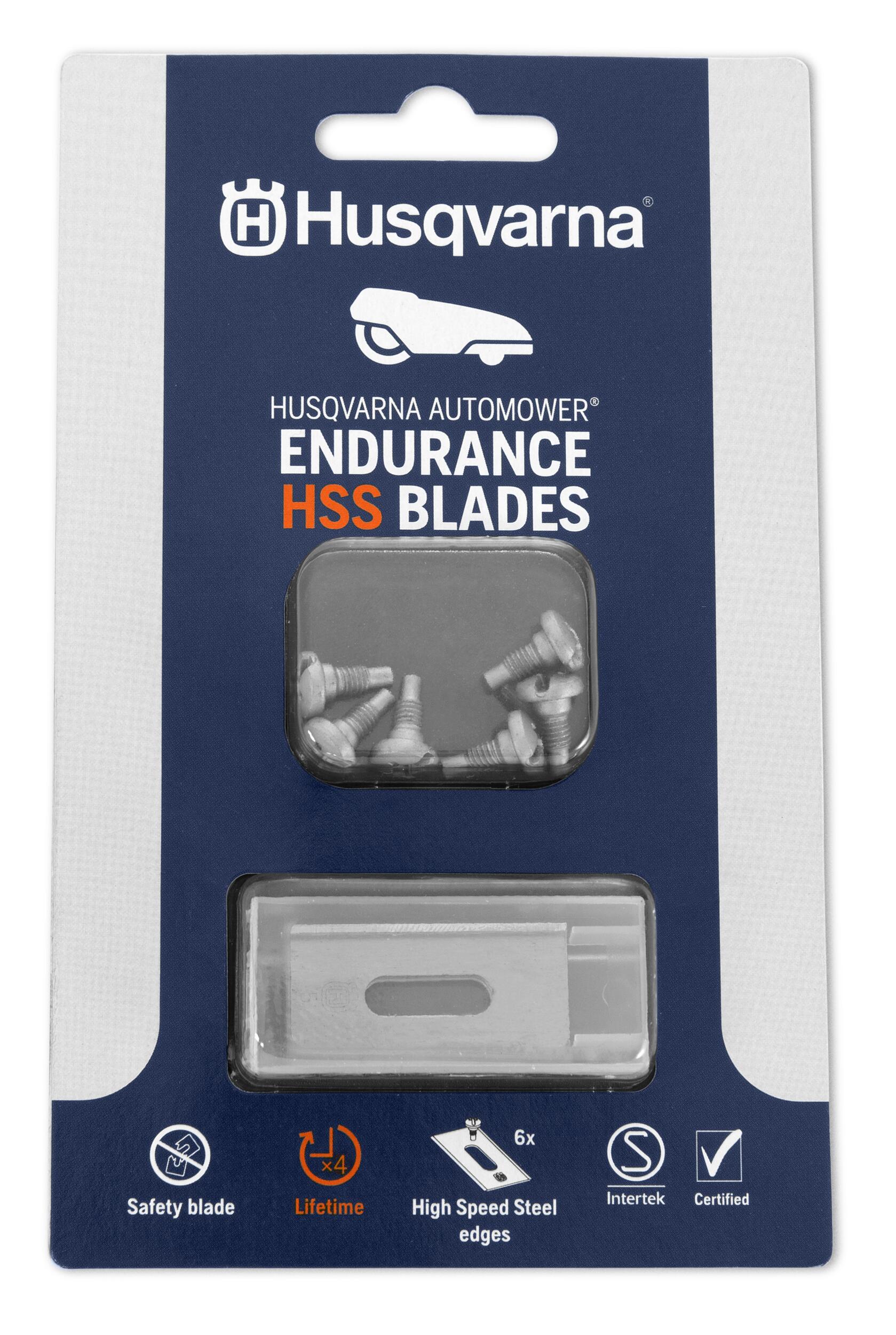 Hochgeschwindigkeits-Stahlklingen mit weicherem Kern und gehärteten Kanten für zusätzliche Schärfe und Robustheit. Das Husqvarna Endurance-Design ermöglicht Schneidkanten an allen vier Seiten der Klinge, und die neue Materialauswahl bietet verbesserte Schneideigenschaften. Sicherheitsklinge nach Norm.