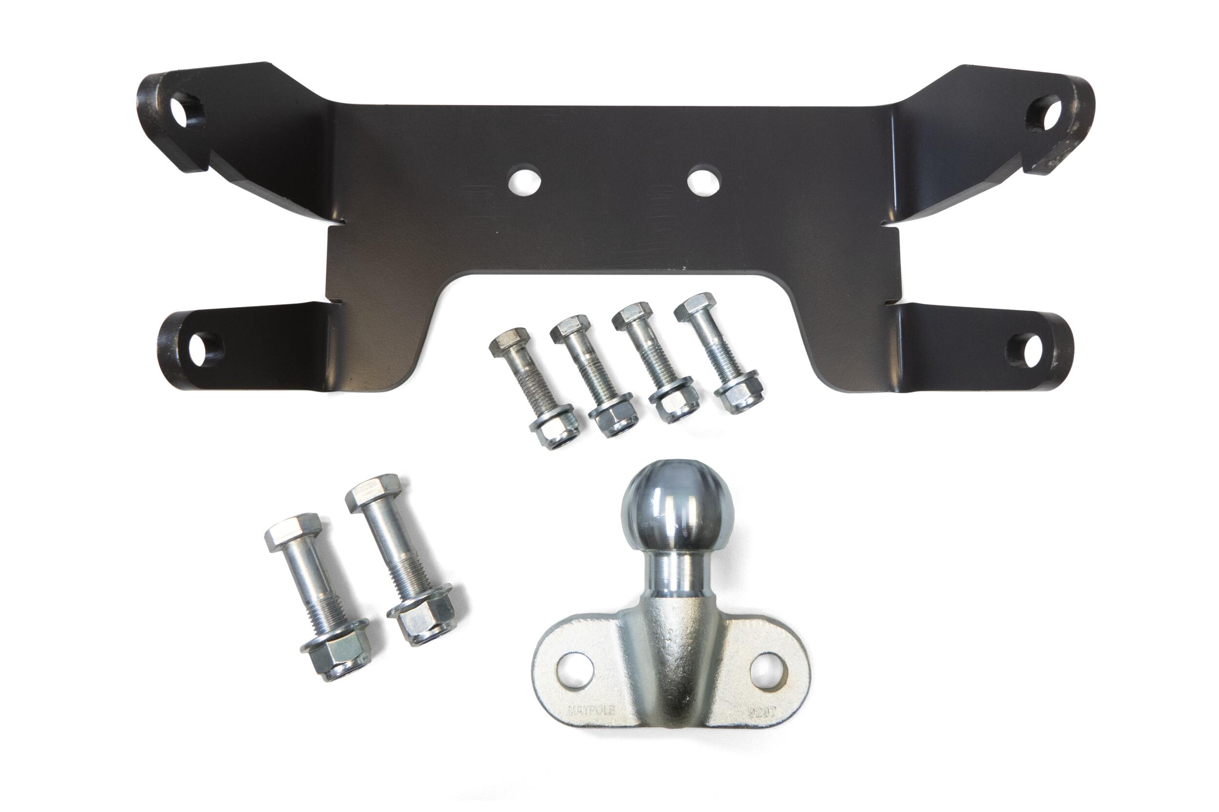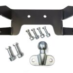 Anhängerkupplungs-Set für die Montage an Frontmähern. Kugeldurchmesser 50 mm. Maximales Zuggewicht 350 kg.