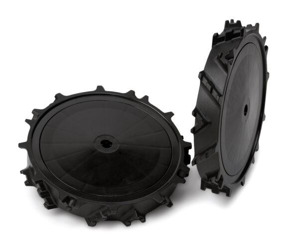 Die beiden speziellen Antriebsräder mit geländegängigem Profil geben einem STIHL iMOW® Mähroboter der Baureihe RMI 4 besseren Halt in besonders unebenem Terrain.