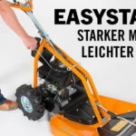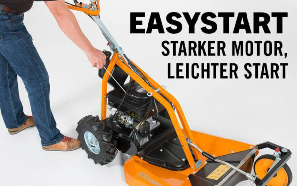 Mulchen, wo andere an ihre Grenzen stoßen. Der AS 63 2T ES ist mit dem AS-2-Takt-Motor ausgestattet, dem weltweit einzigen 2-Takt-Motor, der die aktuelle EU-Abgasrichtlinie 97/68/EG erfüllt. Er ermöglicht Mäharbeiten in extremen Steillagen, wo ansonsten nur noch handgehaltene Freischneider zum Einsatz kommen. Wesentlich dafür ist die lageunabhängige Motorschmierung des 2-Takt-Motors. Hanglagen mit einer Steigung bis über 40 Grad sind möglich. Das Starten des Motors wird durch die EasyStart-Funktion erleichtert. Hierbei halbiert das digitale Zündsystem CDI die für den Start erforderliche Kraft am Starterseil erheblich. Das hohe Drehmoment und die hohe Drehzahl von 3.800 U/min. des 2-Takt-Motors ermöglicht das Mähen von bis zu 100 cm hohem Gras mit leichtem Gestrüpp. Bei Kollissionen mit Fremdkörpert schützt die durch die Messerkupplung getrennte Motor-und Messerwelle den Motor. Die Geschwindigkeit des Antriebs lässt sich stufenlos per Variomatic von 2,0 – 4,0 km/h einstellen. Mit einer Schnittbreite von 61 cm sind Flächenleistungen bis zu 2.400 m² pro Stunde möglich.