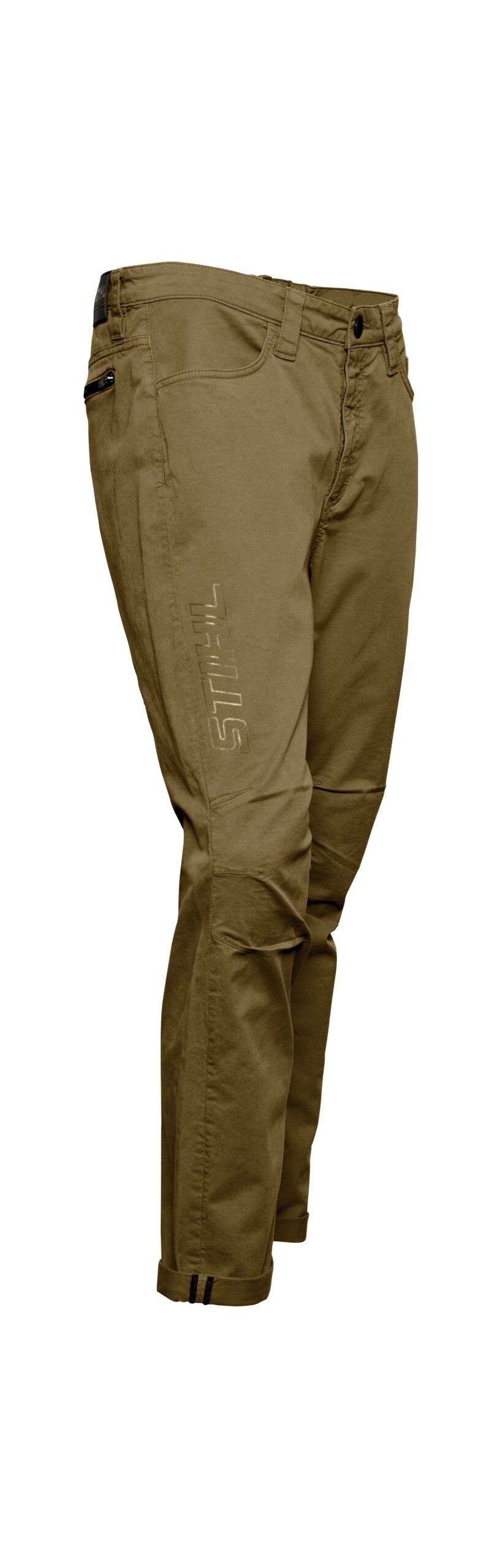 Sieht gut aus und sitzt gut – die Bundhose für Herren im STIHL Style! Die Taschen sorgen dafür, dass alles Wichtige verstaut werden kann, der Reißverschluss an der Tasche am Oberschenkel stellt sicher, dass nichts herausfällt. Auf dem rechten Oberschenkel und am Fußsaum hinten innen ist ein dezenter und reflektierender STIHL Print angebracht. Wird die Hose beim Radfahren umgeschlagen, reflektiert das Logo in der Dunkelheit.