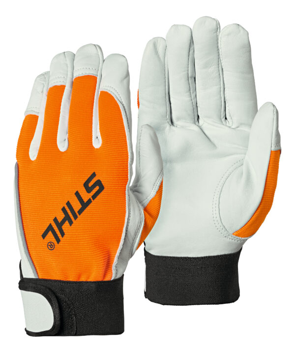 Leichter 5-Finger-Arbeitshandschuh aus Schafleder mit Klettverschluss und Reflexstreifen.