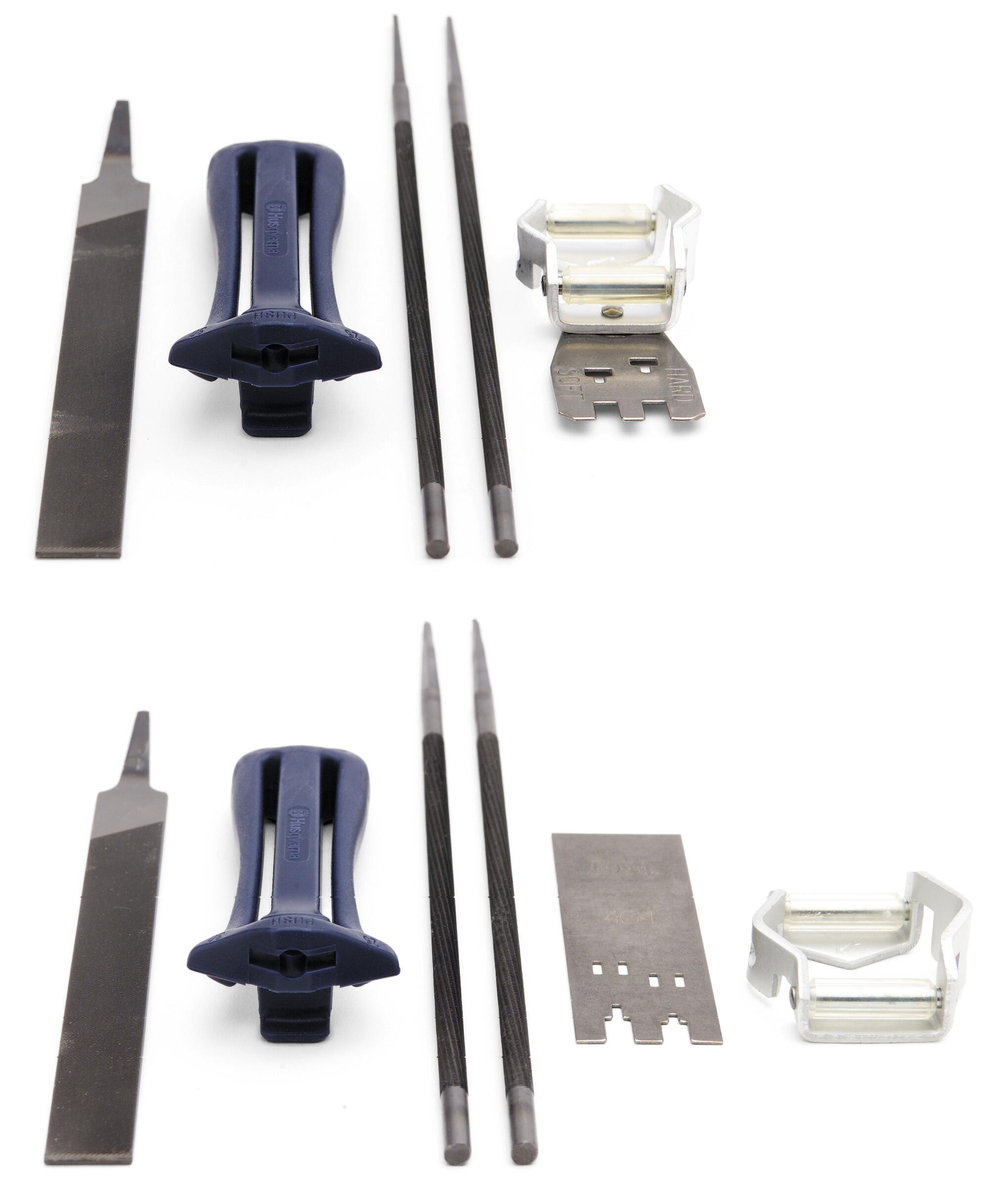 Komplettes Kit, das Ihnen hilft Ihre Kette immer in Form zu halten. Bestehend aus Feilengriffen, Kombilehre, 2 Rundfeilen und 1 Flachfeile. Es ermöglicht Ihnen ein einfacheres Arbeiten durch den richtigen Feilwinkel.