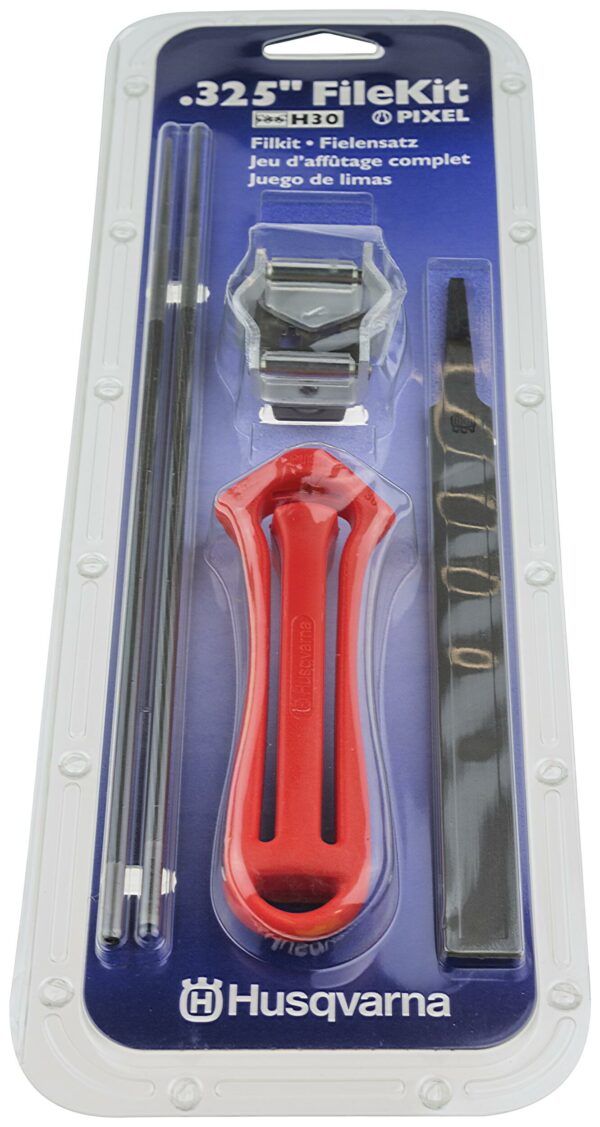 Komplettes Kit, das Ihnen hilft Ihre Kette immer in Form zu halten. Bestehend aus Feilengriffen, Kombilehre, 2 Rundfeilen und 1 Flachfeile. Es ermöglicht Ihnen ein einfacheres Arbeiten durch den richtigen Feilwinkel.
