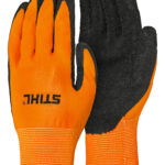 Arbeitshandschuh universal aus PES-Gestrick mit rauer Latextauchung. Atmungsaktiv im Handrücken und an der Fingeroberseite. Für Arbeiten bei Nässe, robust. Farbe schwarz/orange. Weitere Details wenn Vorhanden: