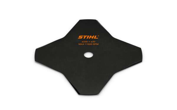 Grasschneideblatt aus Stahl mit vier Schneidkanten. Wendbar. Anwendungsschwerpunkt: Mäharbeiten in starkem, trockenem Gras, starkem Unkraut. Auch für Schilf und dünne Büsche geeignet. Nur mit Universalschutz verwenden.