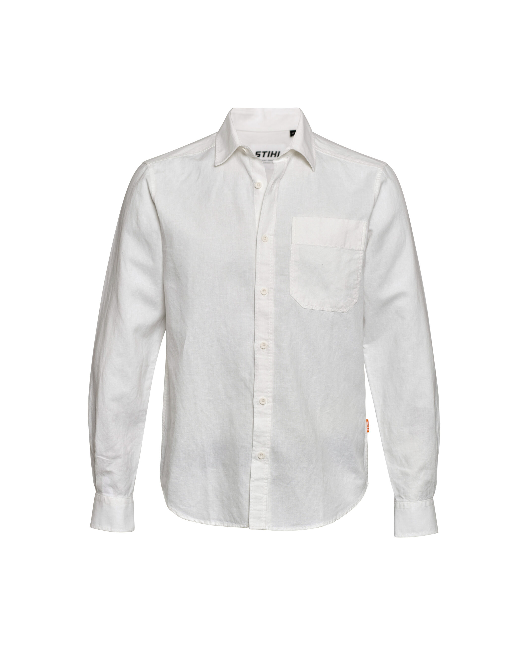 Macht so einiges mit und sieht dabei immer gut aus: das luftige Hemd aus Leinen-Baumwollmischung in Weiß bei der Arbeit und in der Freizeit. Mit einer aufgesetzten Brusttasche, abgesetzter Knopfleiste und STIHL Flag Label an der Seite.