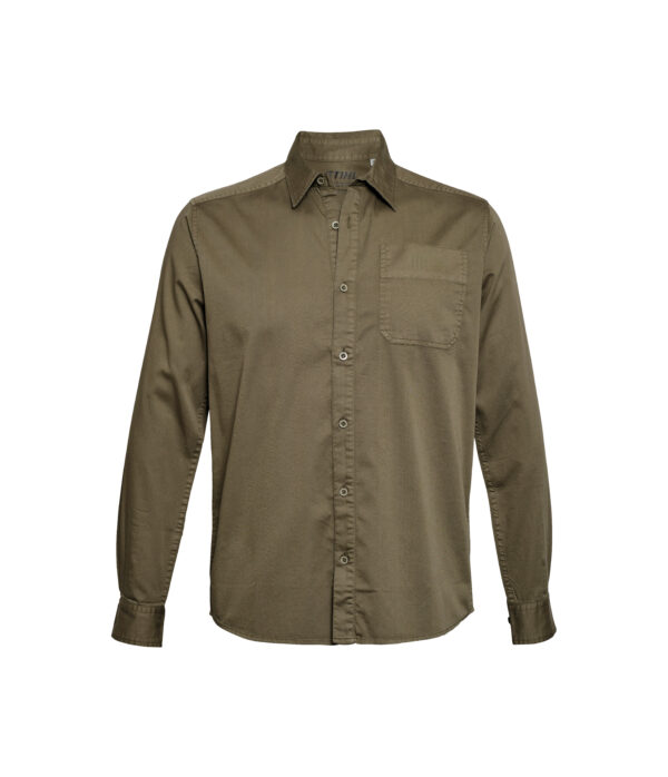 Hemd in gewaschener Optik. Lyocell ist ein industriell gefertigtes, nachhaltiges Material aus Holzfaser. Das Hemd verfügt über die üblichen Features wie Knopfleiste, Hemdkragen und aufgenähte Brusttaschen. Ein STIHL Label ziert die Seitennaht.