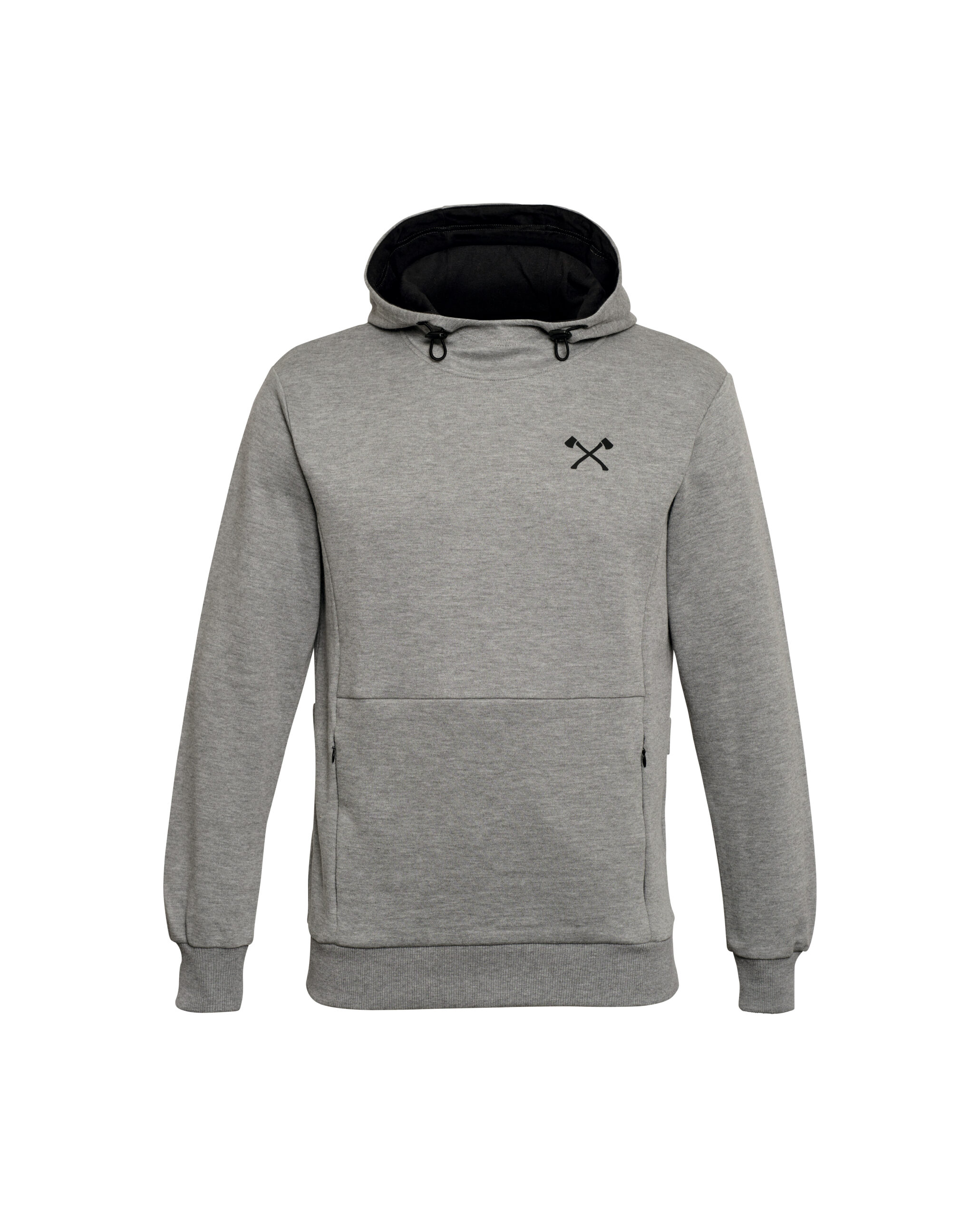 fit geschnittene Hoodie ist in grau gehalten, vorne auf der Brust sind zwei kleine gekreuzte Äxte angebracht. Der große TIMBERSPORTS ® Print auf dem Rücken macht klar, dass es sich hierbei um ein Kleidungsstück für echte Fans handelt.