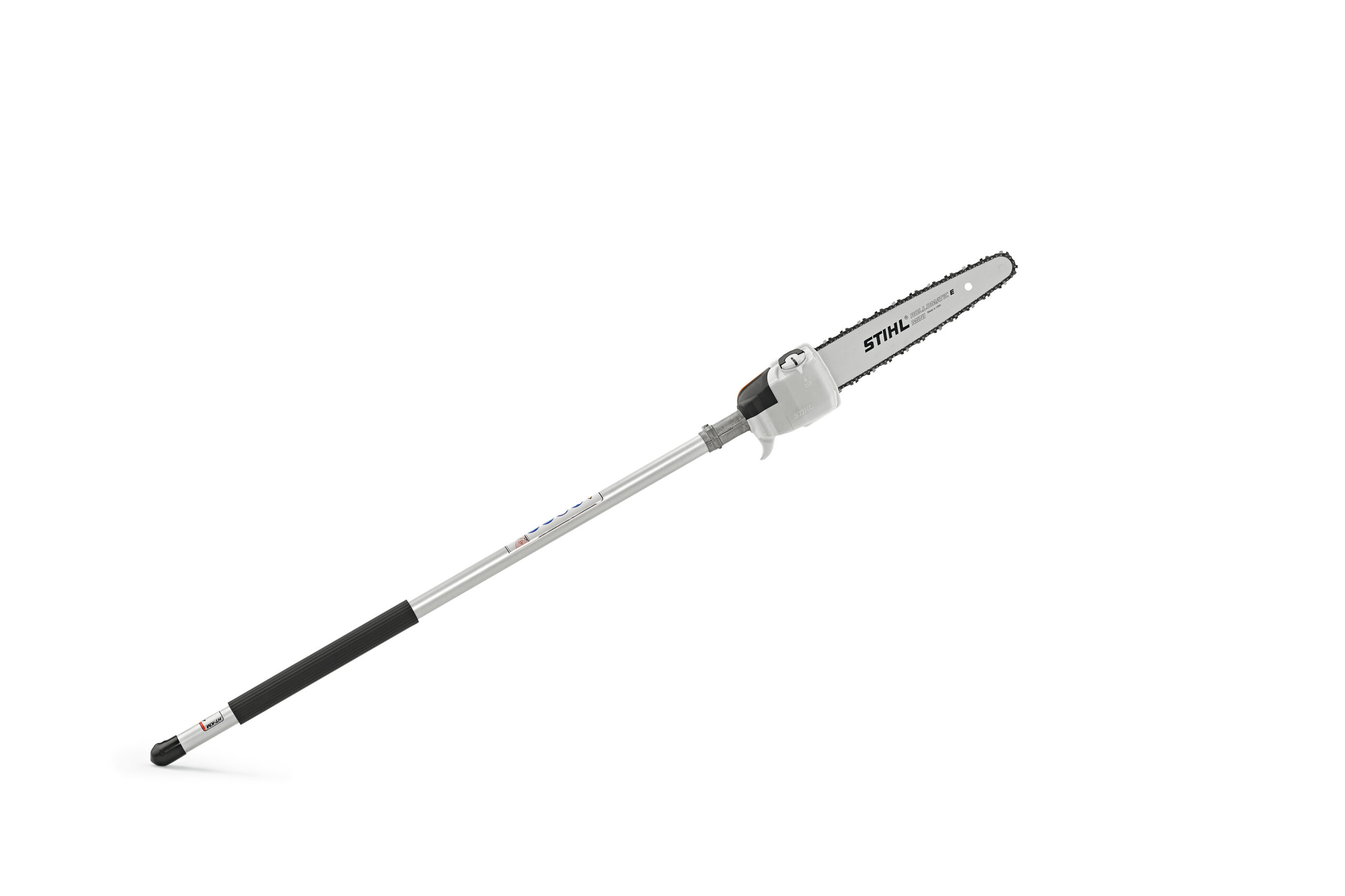 Schneidet präzise an hohen Ästen. Kompakte Bauweise, mit