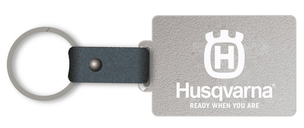 Schlüsselring aus Metall mit Husqvarna „READY WHEN YOU ARE“ Anhänger.