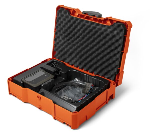 The service interface box is used as an interface between the Husqvarna product and the Husqvarna Service Hub when it comes to tasks such as service, diagnostic or firmware updates. The service box can be connected to the Service Hub by USB or WiFi.
