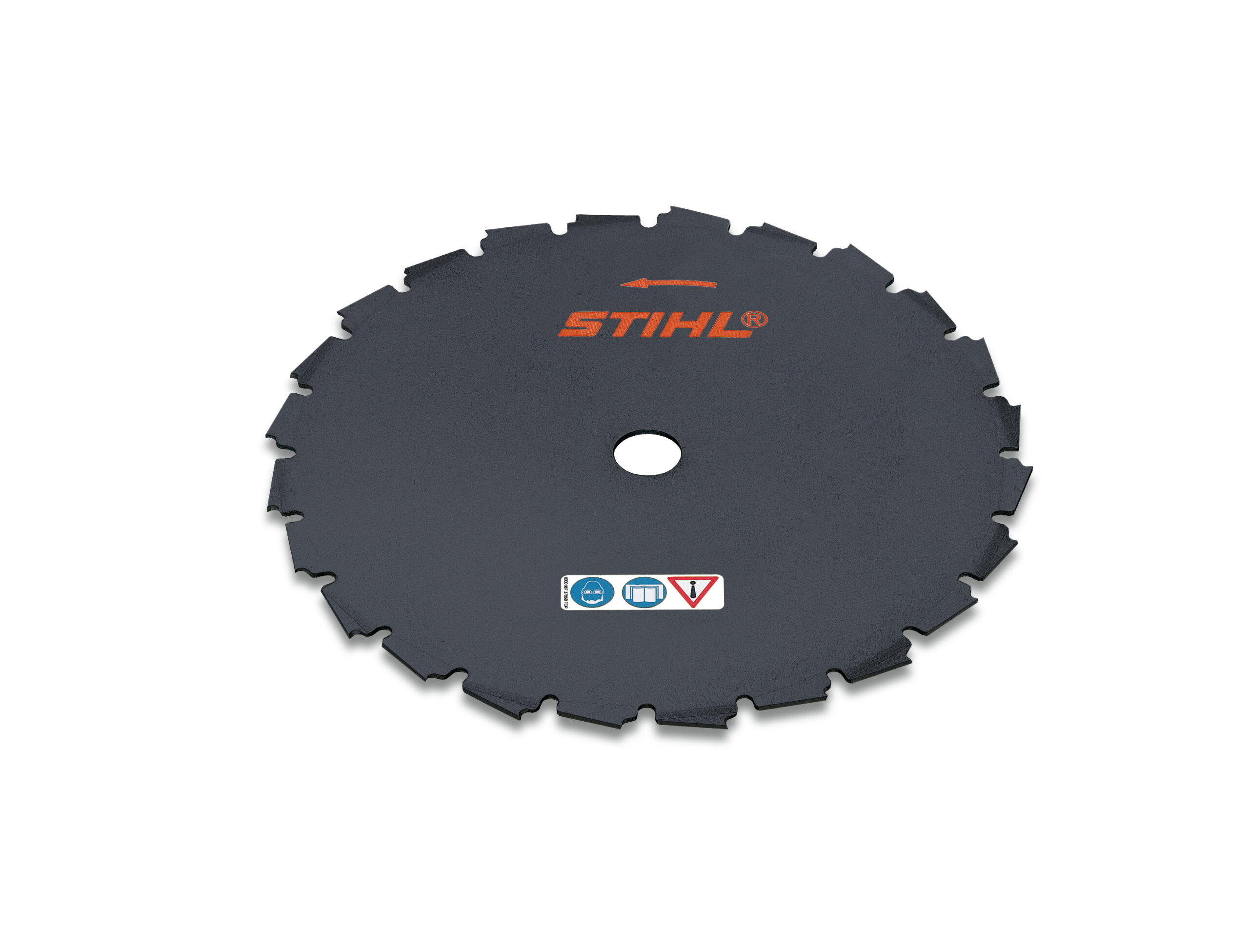 Kreissägeblatt mit Meißelzähnen für knorriges Buschwerk, dünne Baumstämme und andere Sägeeinsätze in der Forstpflege. Nur mit Anschlag verwenden.