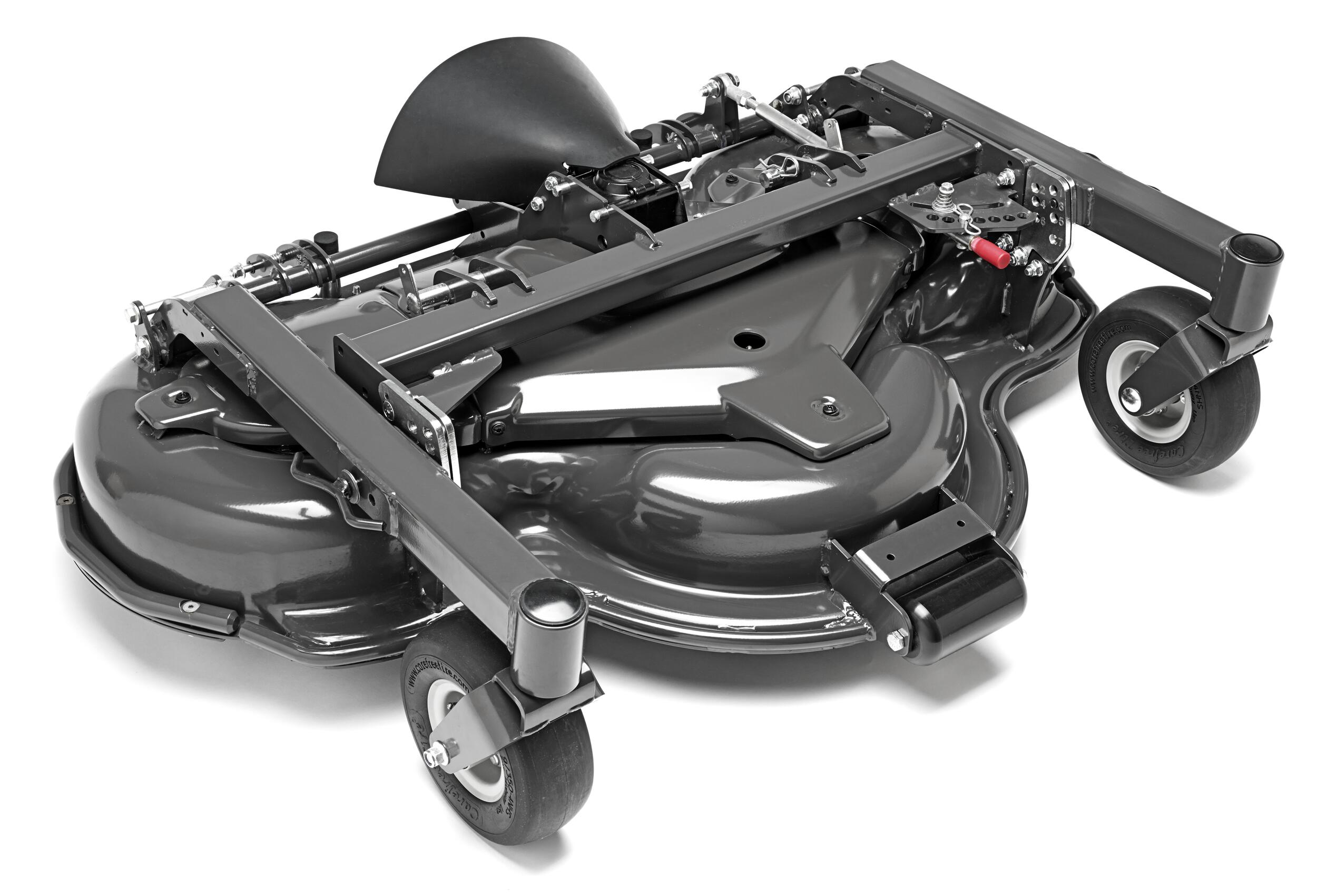 Hochklassiges Mähdeck, mit dem sowohl gemulcht als auch herkömmlich gemäht werden kann. Robustes Design dank 4,5 mm Stahl, aus dem das Mähdeck gestanzt wurde. Hydraulische Höhenanpassung.