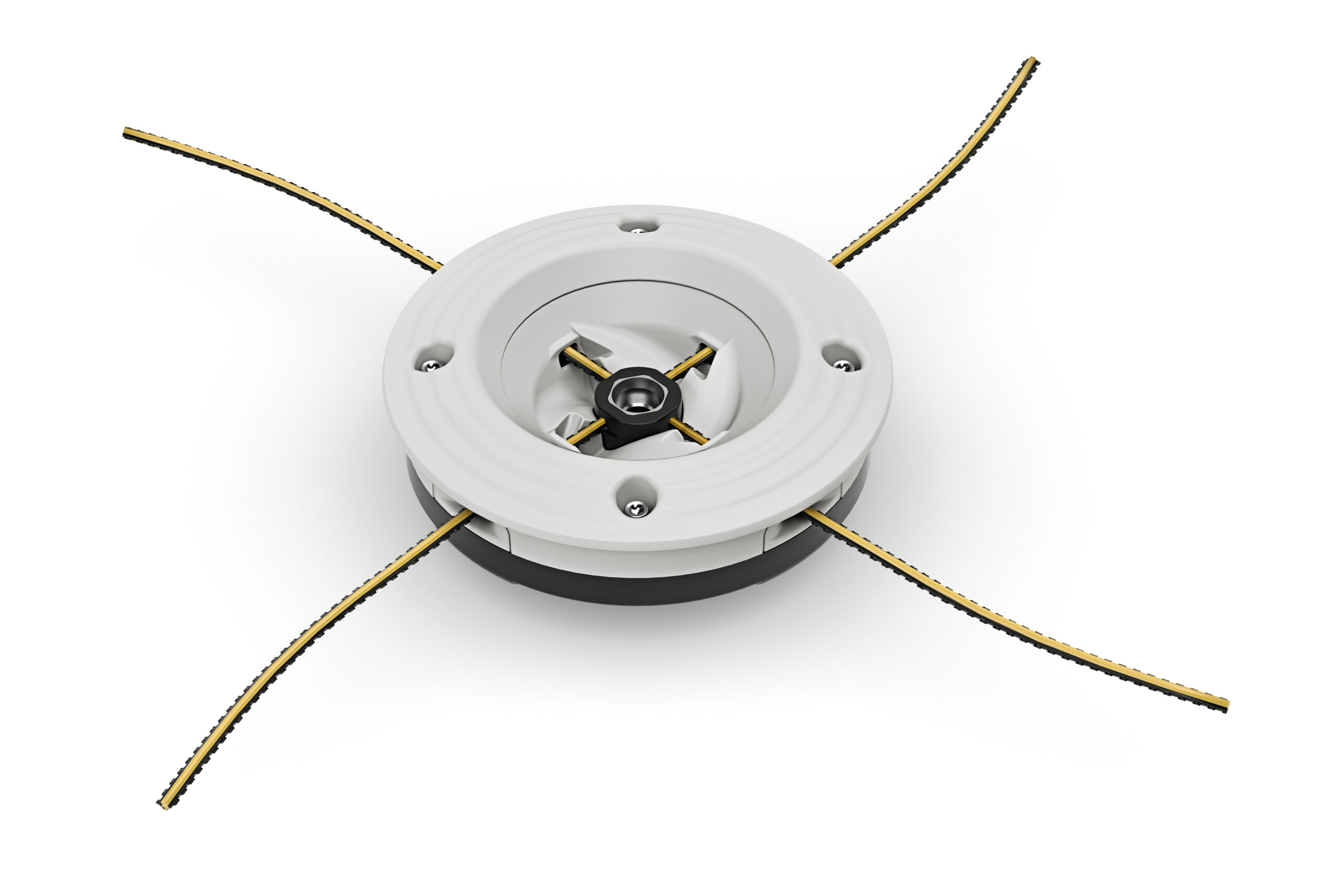 Vierfädiger Fadenmähkopf für Flächen-und Ausputzarbeiten in zähem Gras. Einfaches Einstecken von bis zu 4 Fadenstücken. Kompatibel zu vielen verschiedenen Mähfadengrößen und -formen.