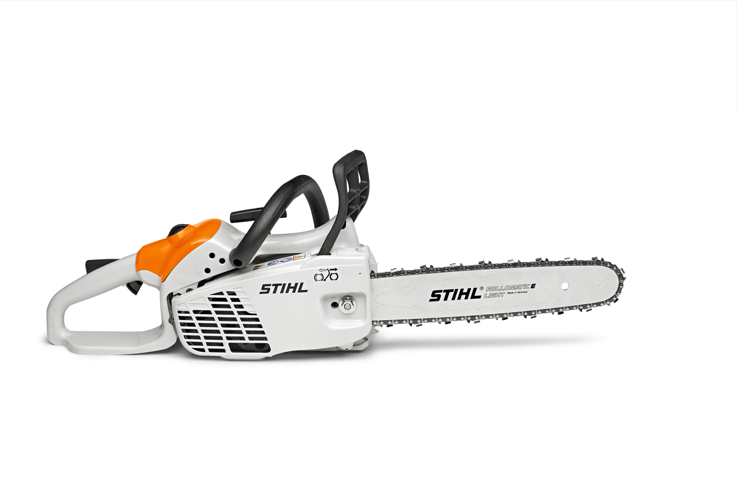 Leichte STIHL Motorsäge für Handwerk, Haus und Garten sowie zur Jungbestandspflege. STIHL ErgoStart, manuelle Kraftstoffpumpe und Stopp-Taster ermöglichen ein einfaches und kräfteschonendes Starten, verliersichere Mutter am Kettenraddeckel, 3/8″-PMM3-Sägekette für eine gute Schnittleistung.