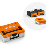 Bei Einsätzen mit Ihren Akku-Geräten aus dem STIHL AP System hilft Ihnen die praktische STIHL Akku-Power Box. In der praktischen Kunststoffbox erhalten Sie ein Set aus 2 Akkus AP 500 S (337 Wh) und dem Schnellladegerät AL 501. Die einzelnen Bestandteile sind zwischen den Arbeitseinsätzen in der stoßfesten Akku-Box sauber und trocken verstaut.