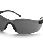 Schutzbrille mit kratzfesten, graugetönten Gläsern mit UV-Schutz für bessere Sicht in sonniger Umgebung.