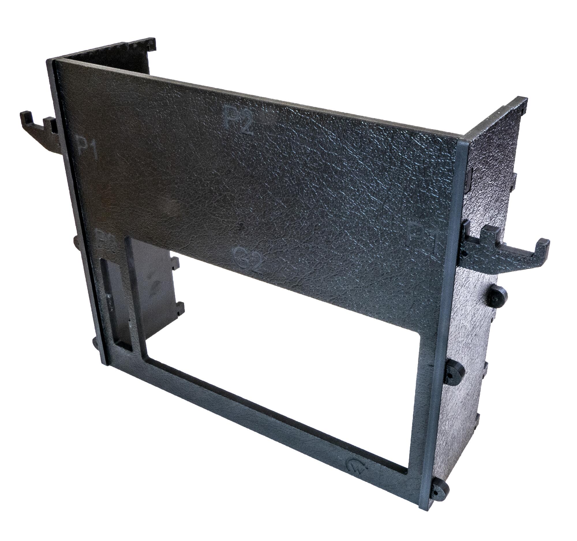 A charging nose holder that allows you to store your charging noses in a smart and effective way, directly on the tool panel. The holder has markings that show where to place the different charging noses