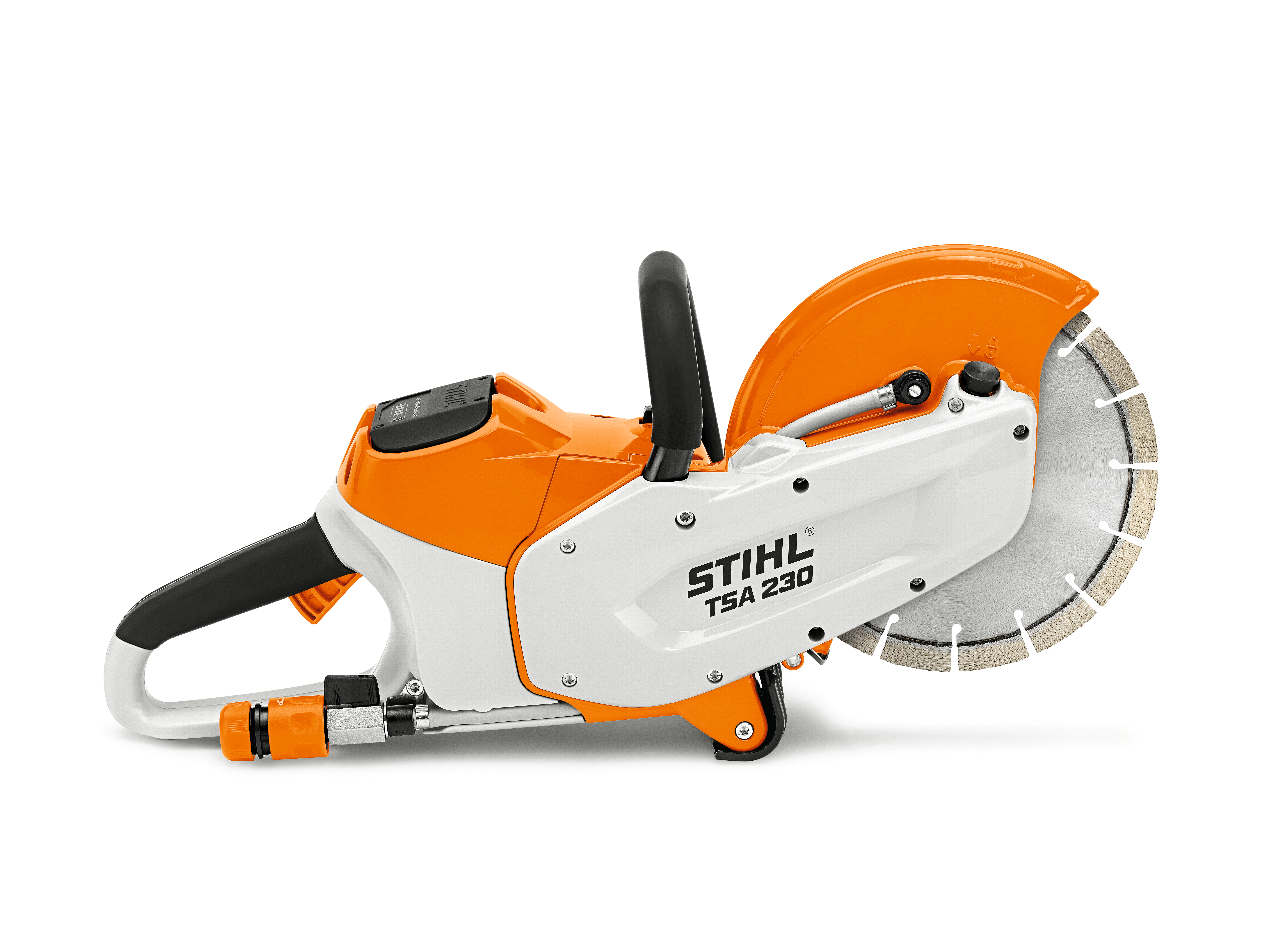 Durch die emissionsfreie Arbeitsweise lässt sich der Akku-Trennschleifer TSA 230 auch im Innenbereich von Gebäuden, beispielsweise in Hallen, einsetzen. Gerade dort ist es wichtig, dass beim Trennen entstehender Staub sofort gebunden wird. Dafür sorgt der integrierte Wasseranschluss zur Benetzung der Trennscheibe. Alternativ können Sie die Staubbelastung auch durch den optionalen STIHL Tiefenanschlag verringern. Hier wird der entstehende Staub über einen Absaugstutzen direkt in einen angeschlossenen Nass- und Trockensauger, beispielsweise der STIHL SE 133 ME, geleitet.