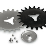 Bestehend aus zwei Ersatzmessern und einem Laufteller.