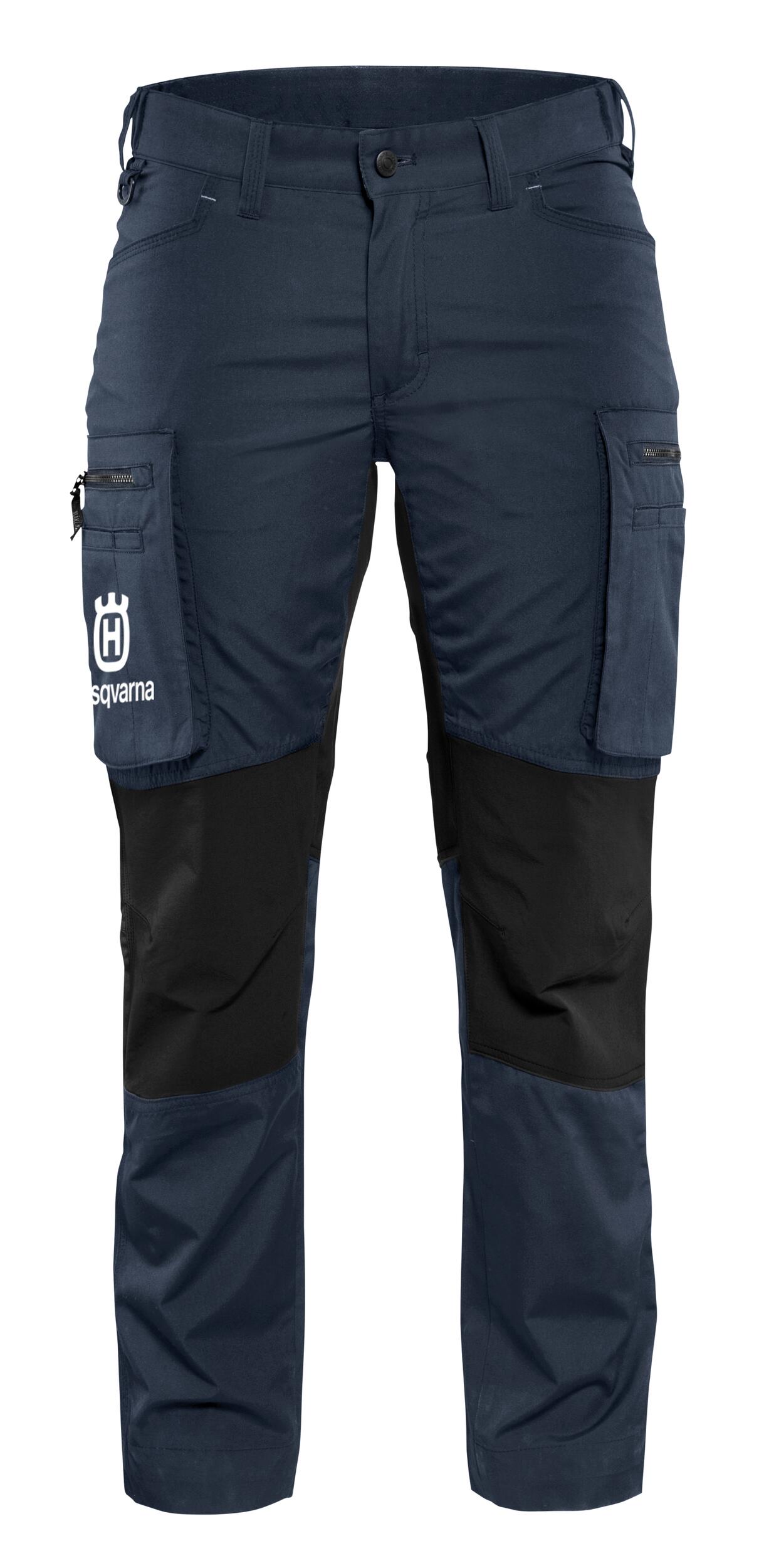 Moderne Damen-Service-Hose aus leichtem, aber strapazierfähigem Material mit schnelltrocknenden Eigenschaften – ideal für Arbeiten im Innenbereich oder im Freien bei warmem Wetter. Das Modell hat eine schmalere Passform, eine elastische Taille und vorgeformte Knie für mehr Komfort. Für eine optimale Bewegungsfreiheit verfügt die Hose über Stretcheinsätze an ausgewählten Stellen wie unten, an den Knien und im Schritt. Die Hose hat eine für Rechts- und Linkshänder angepasste Stift- und Messertasche, eine Beintasche mit einer Netzinnentasche für das Handy sowie die Verlängerungsoption am Beinabschluss. Mit Husqvarna Logo.