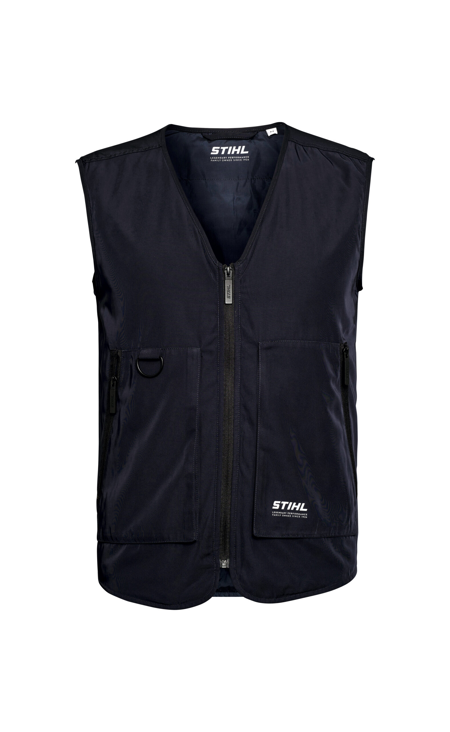 verstauen, was unterwegs so gebraucht wird. Auf der linken Tasche ist der »STIHL LEGENDARY PERFORMANCE « Schriftzug aufgedruckt. Lässt sich hervorragend mit unserem STIHL Hoodie